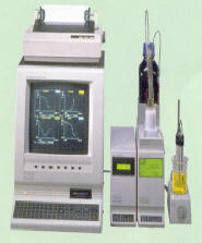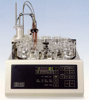 AT-400 Potentiometric Automatic Titrator Compared with conventional titrators, the AT-400 has been reduced in its size and weight so that it occupies minimum space in the lab. Two separate keypads, one in front for keys most frequently used and the other on the top for parameter and function entry are divided for easy operation. ~Liquid crystal display with back light ~Microprocessor controlled titration, endpoint detection and concentration calculation ~Optional accessories |